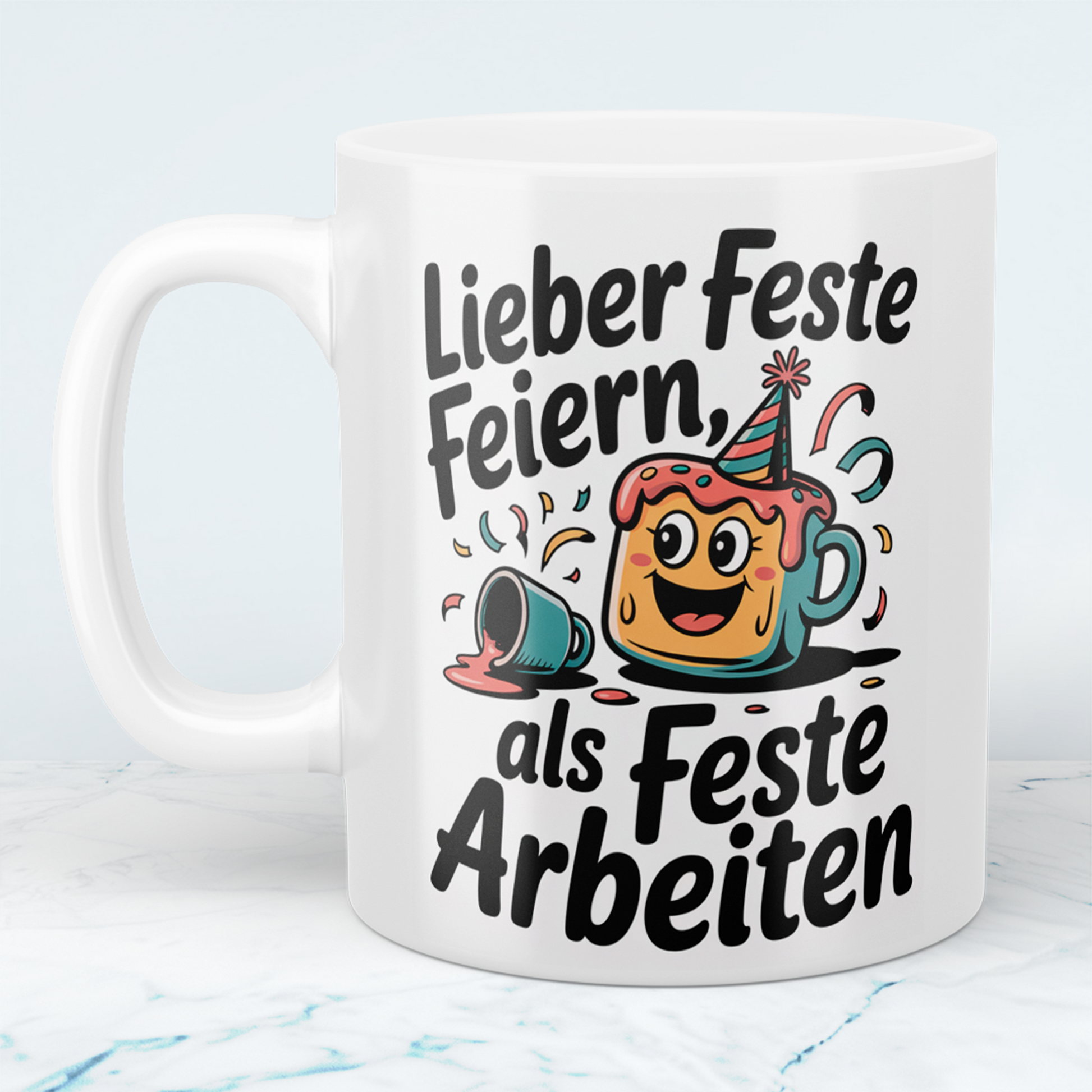 Feierlaune garantiert: “Lieber feste feiern, als feste arbeiten!” – Humorvolles Geschenk für den Büroalltag