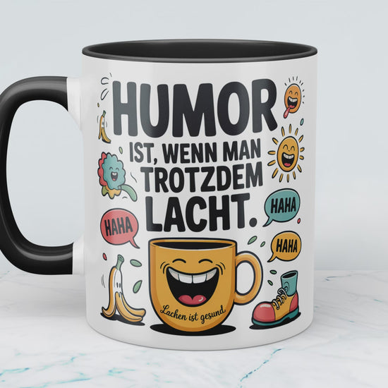 Humorvolle Kaffeetasse für Büro & Homeoffice – Spruch: Humor ist, wenn man trotzdem lacht