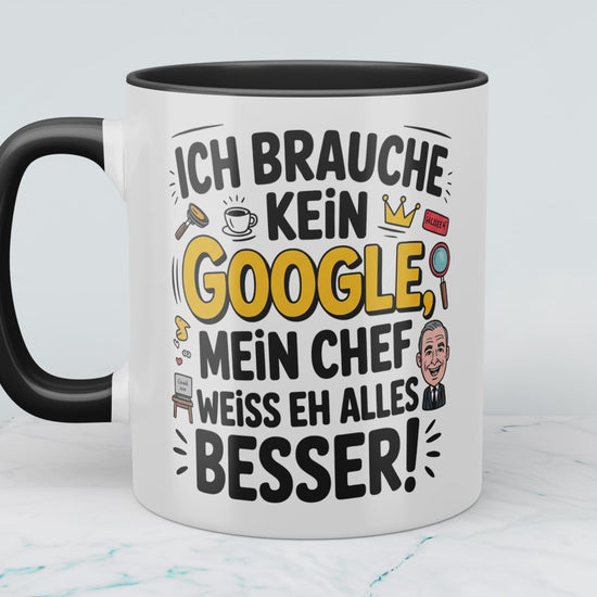 Ich brauche kein Google! Mein Chef weiß eh alles besser! Lustige Tasse als Büro-Geschenk für Humorvolle