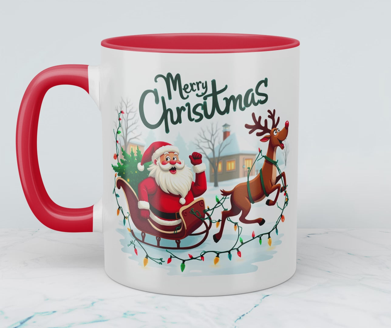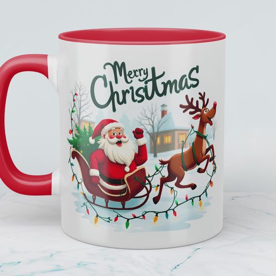 Witzige Tasse mit Weihnachtsmann, Schlitten und Rentier – ein zauberhaftes Geschenk für die Feiertage!