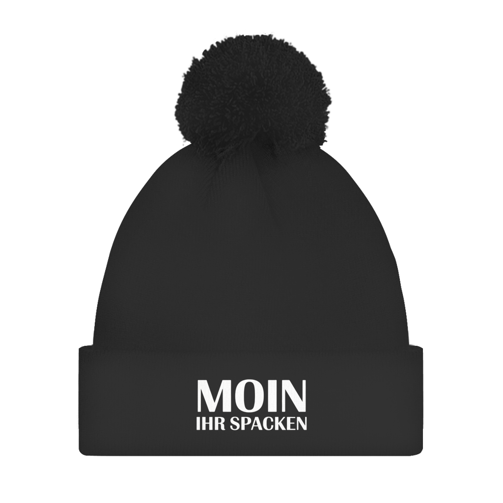 Bommelmütze „Moin ihr Spacken“ – Unisex Statement Wintermütze mit Pompon