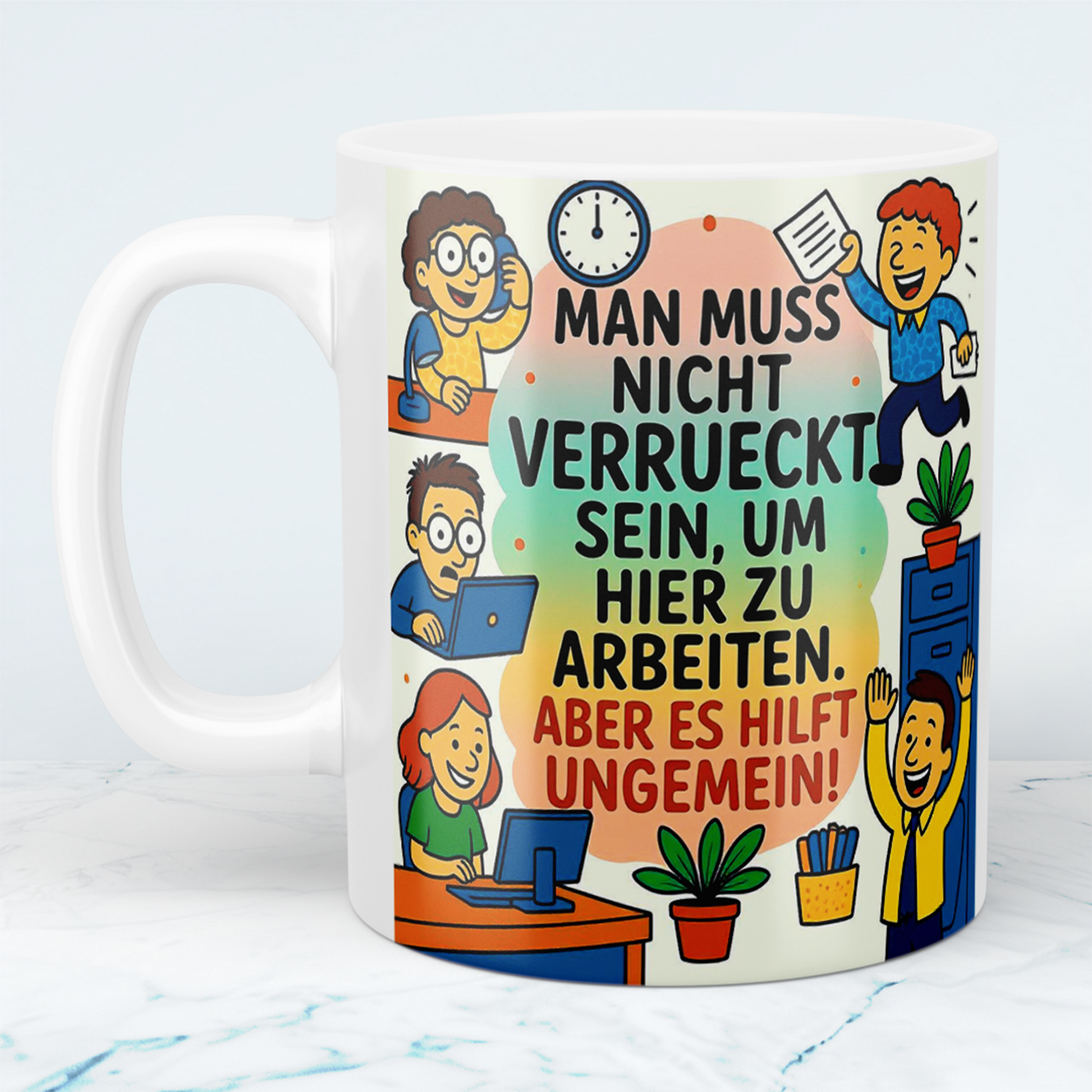 Gönnen Sie sich oder einem lieben Menschen diese humorvolle Tasse und bringen Sie ein Stück Freude in den Büroalltag! Bestellen Sie jetzt und genießen Sie Ihre Getränke mit einem Lächeln!