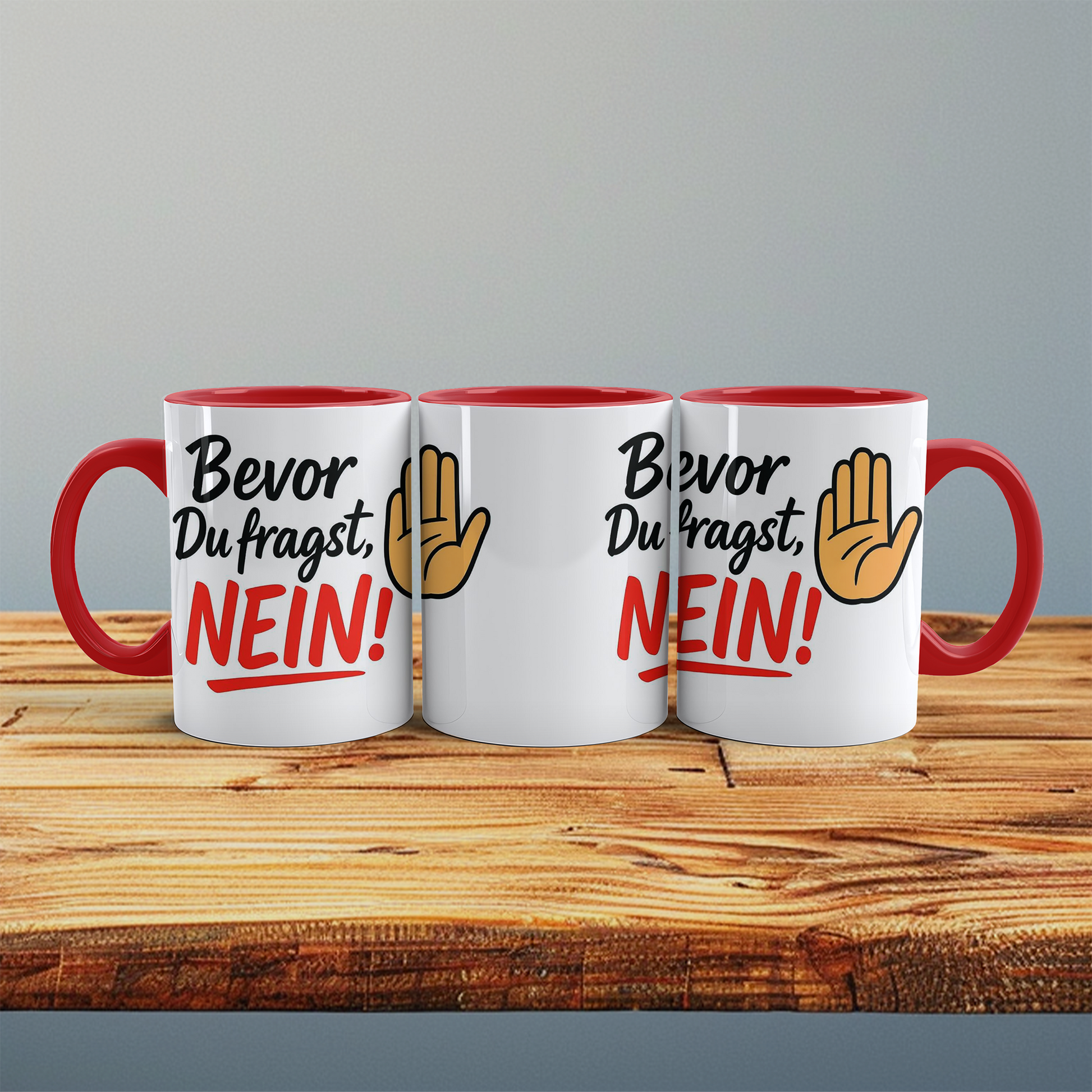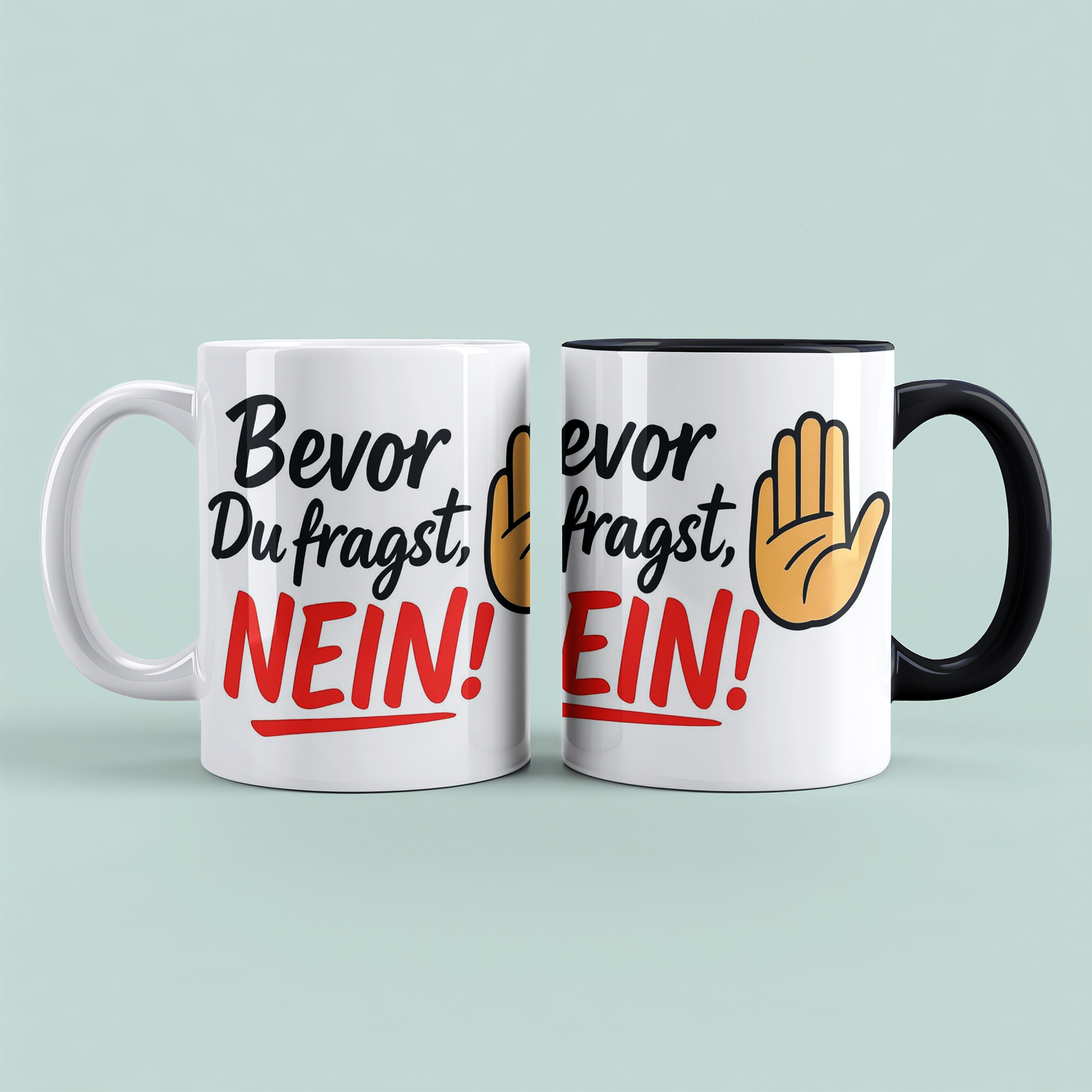 Lustige Bürotasse mit Spruch: Bevor Du Fragst, NEIN! – Für den perfekten Arbeitsalltag